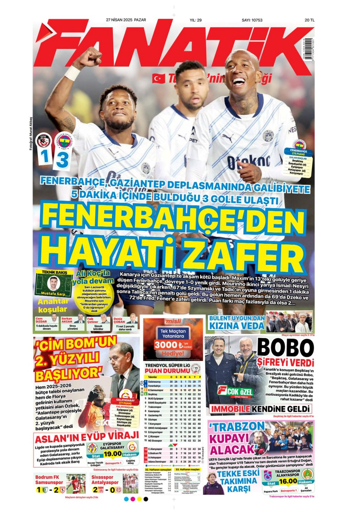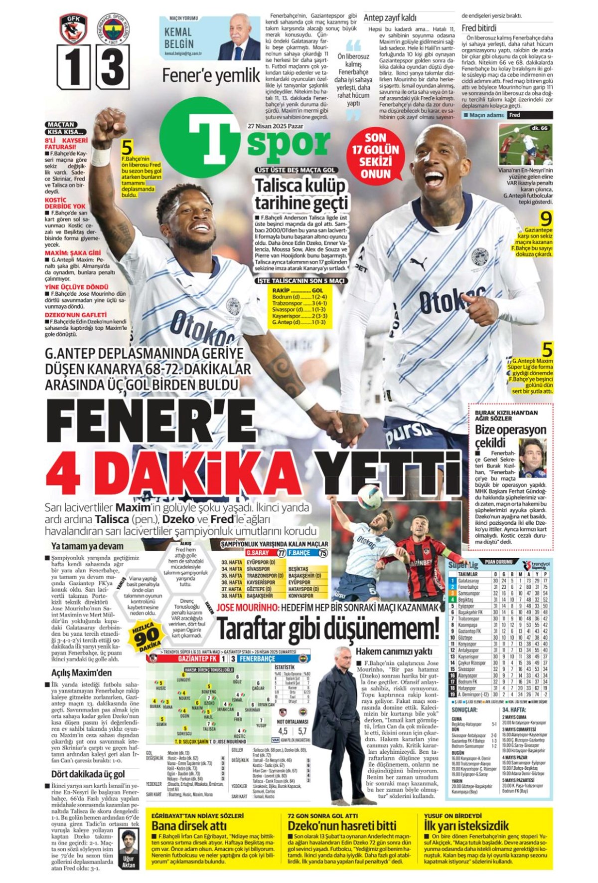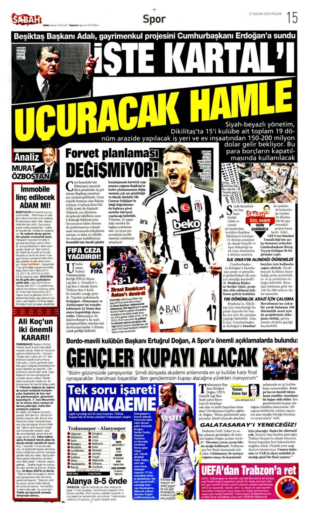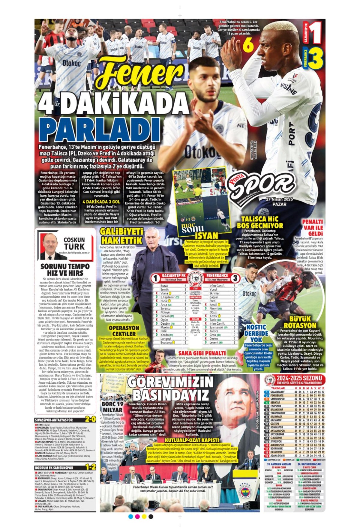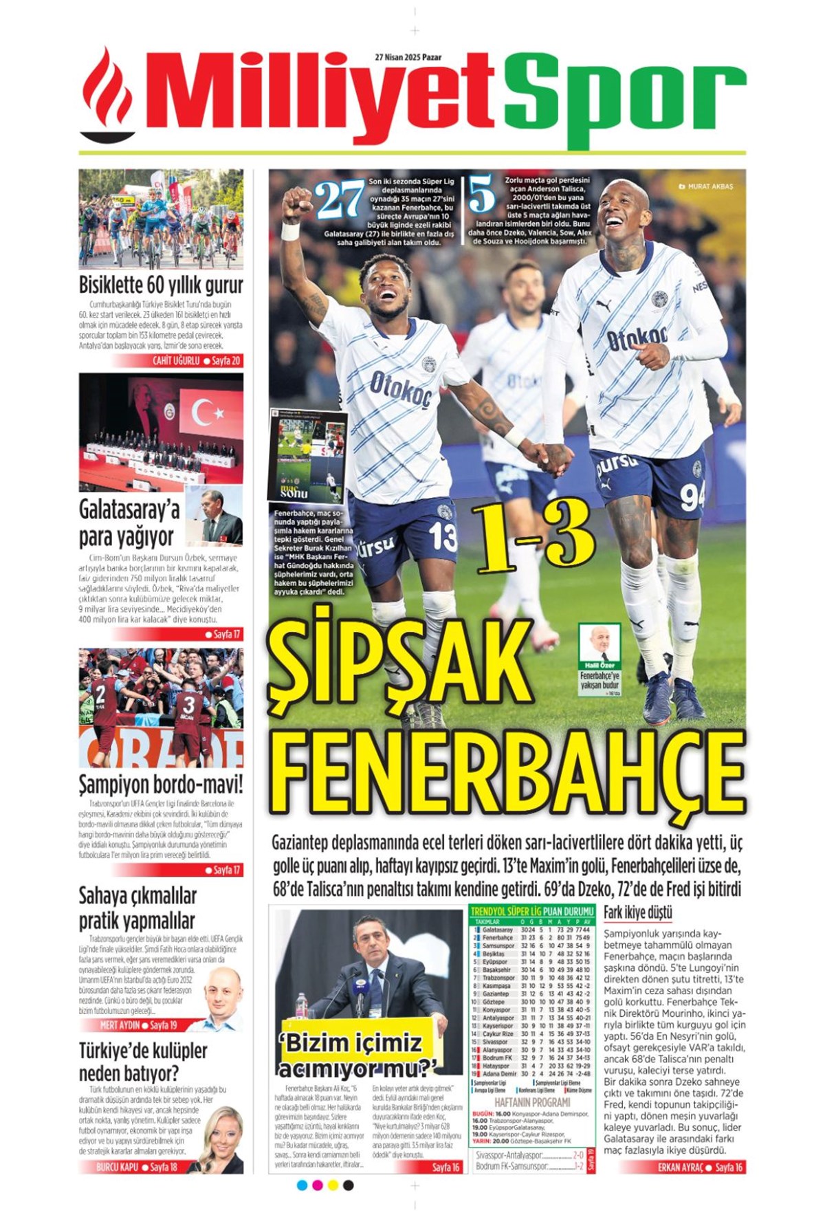 Günün spor niteliklerinde, son gelişmeler ve spor gündemindeki transfer haberleri açıklandı. 27 Nisan 2025 Gazete, Beşiktas, Fenerbahce, Galatasaray ve Trabzonsport’un News’un spor sayfaları 1 dakikaya bir göz atın.