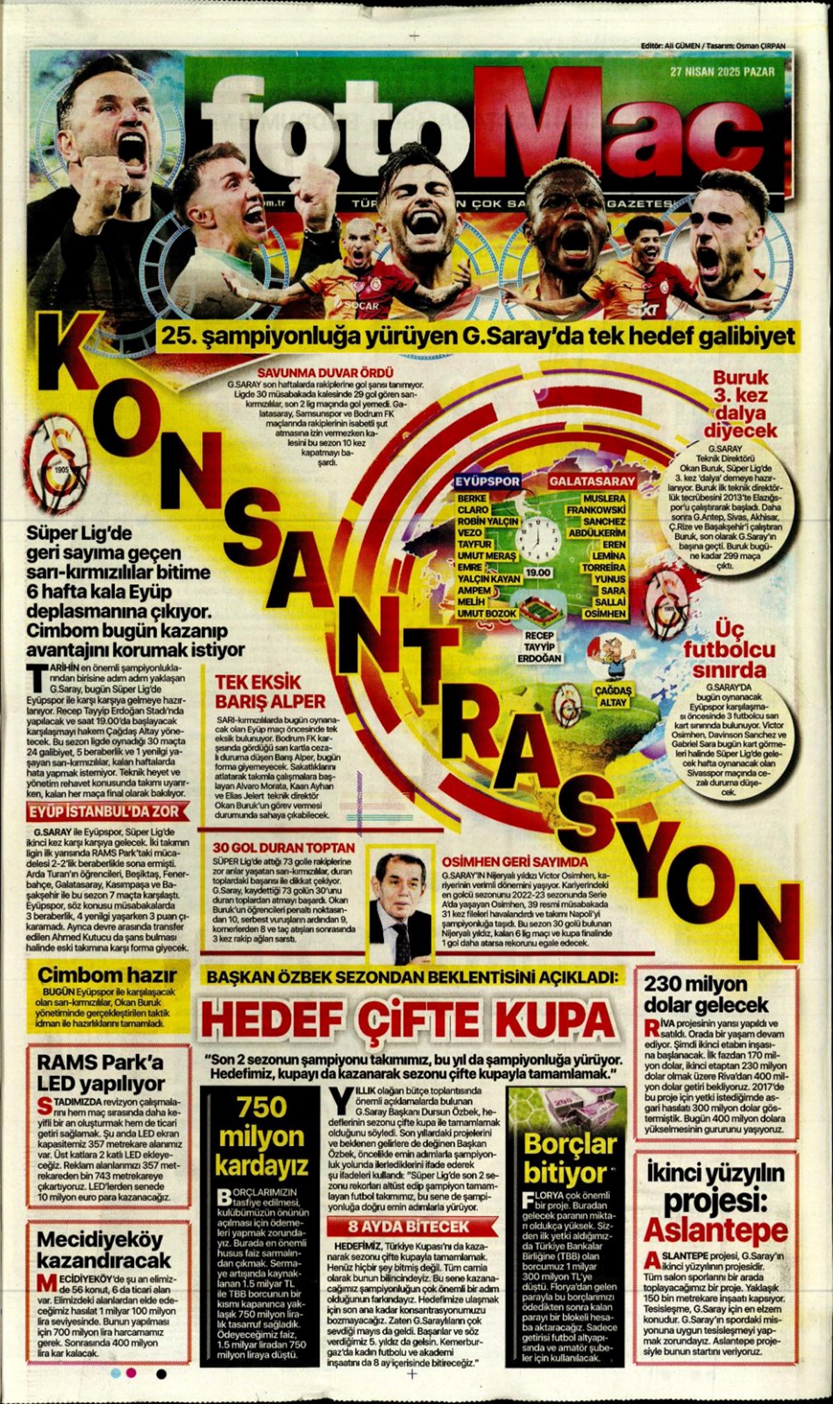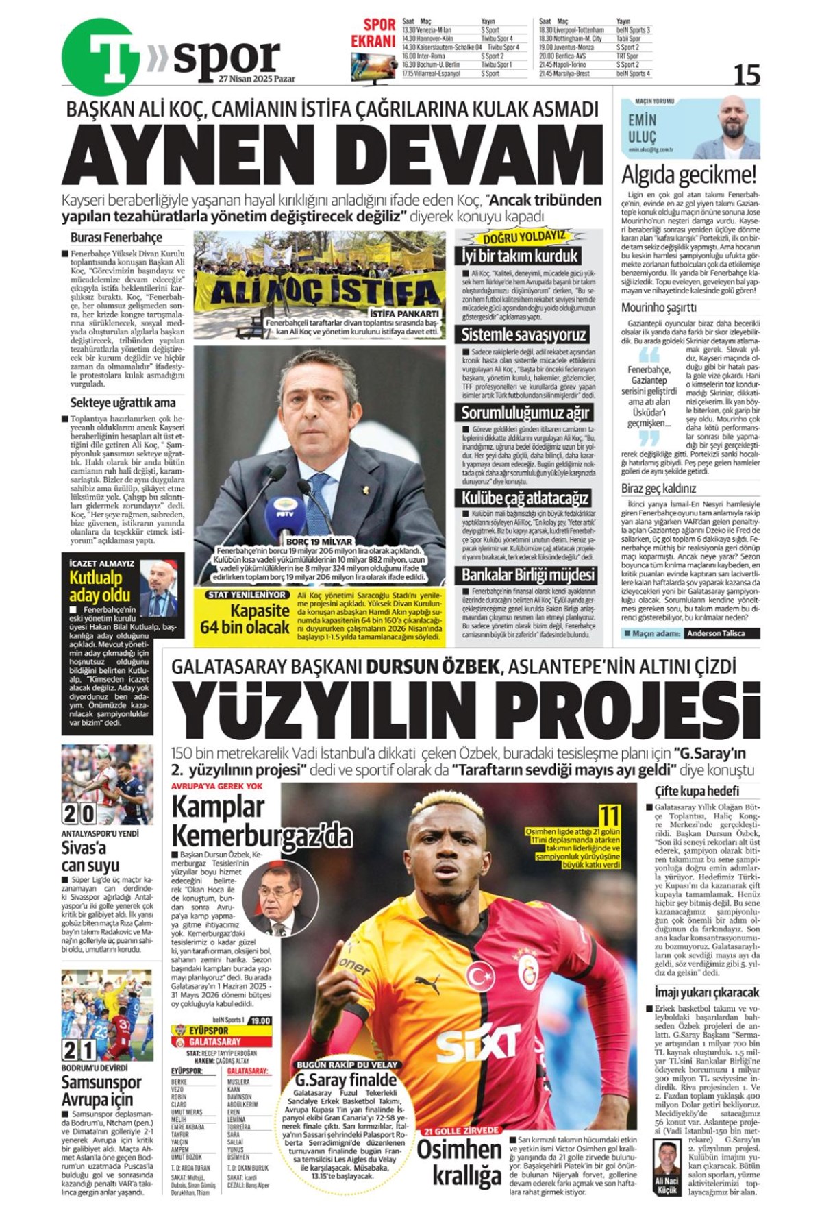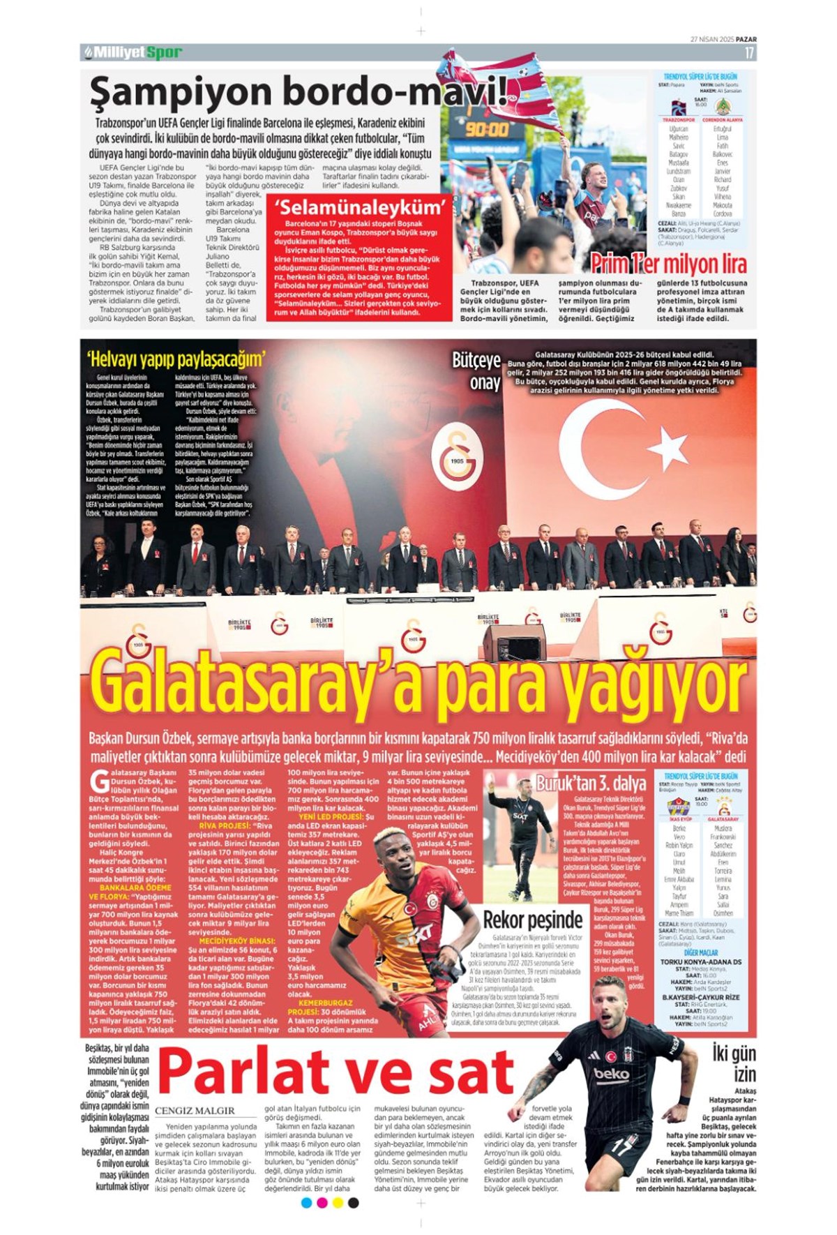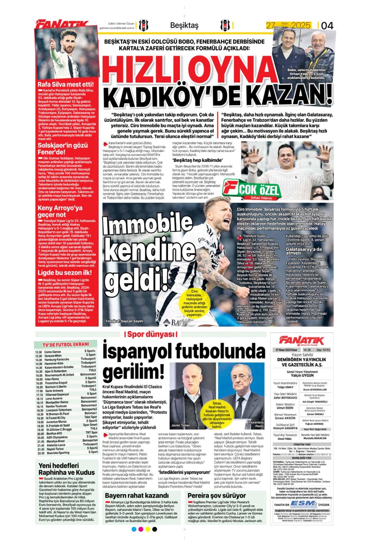 Günün spor niteliklerinde, son gelişmeler ve spor gündemindeki transfer haberleri açıklandı. 27 Nisan 2025 Gazete, Beşiktas, Fenerbahce, Galatasaray ve Trabzonsport’un News’un spor sayfaları 1 dakikaya bir göz atın.