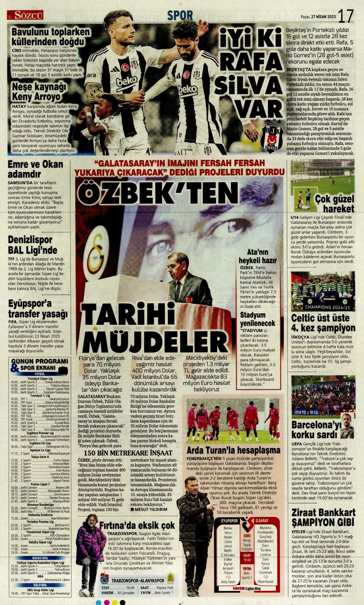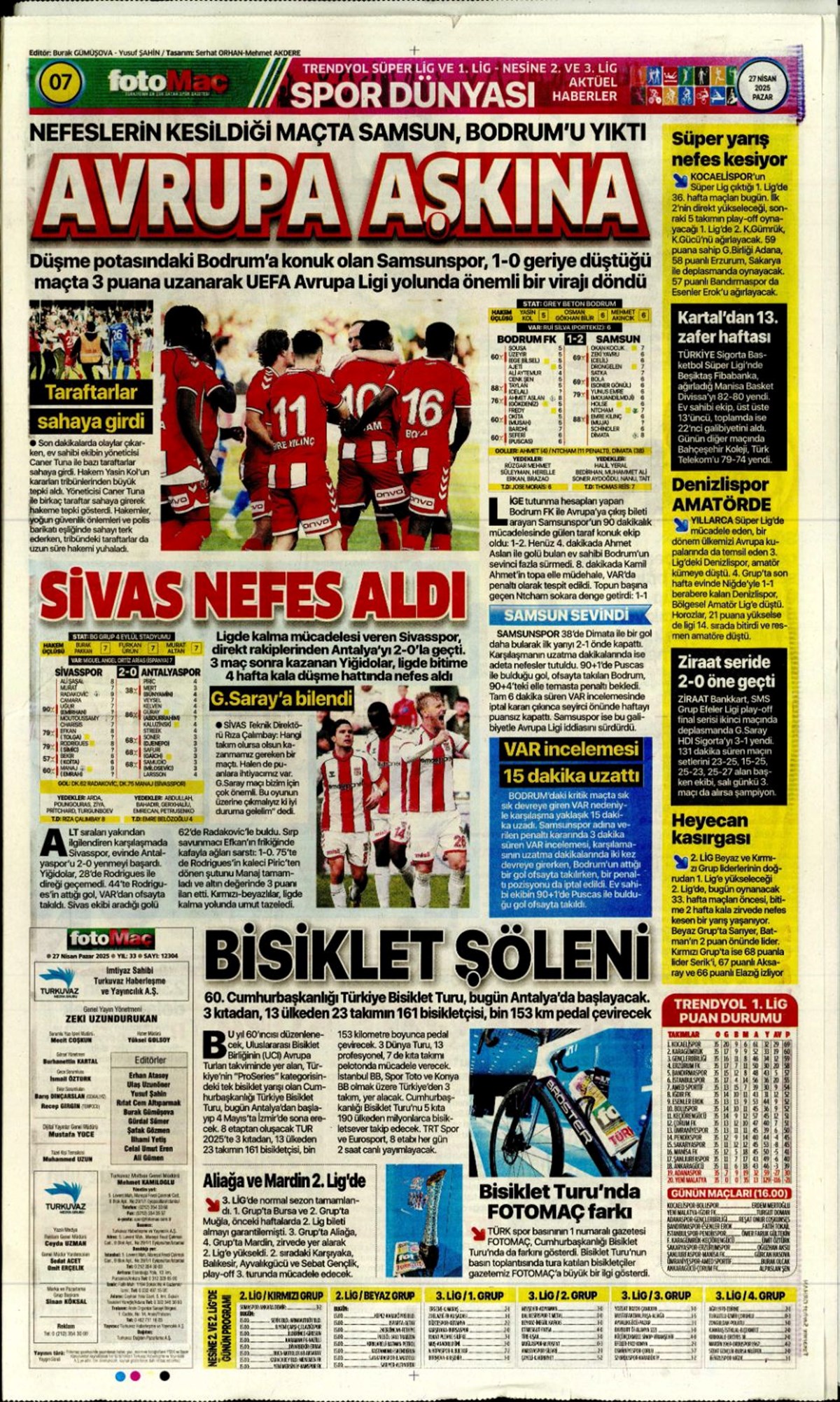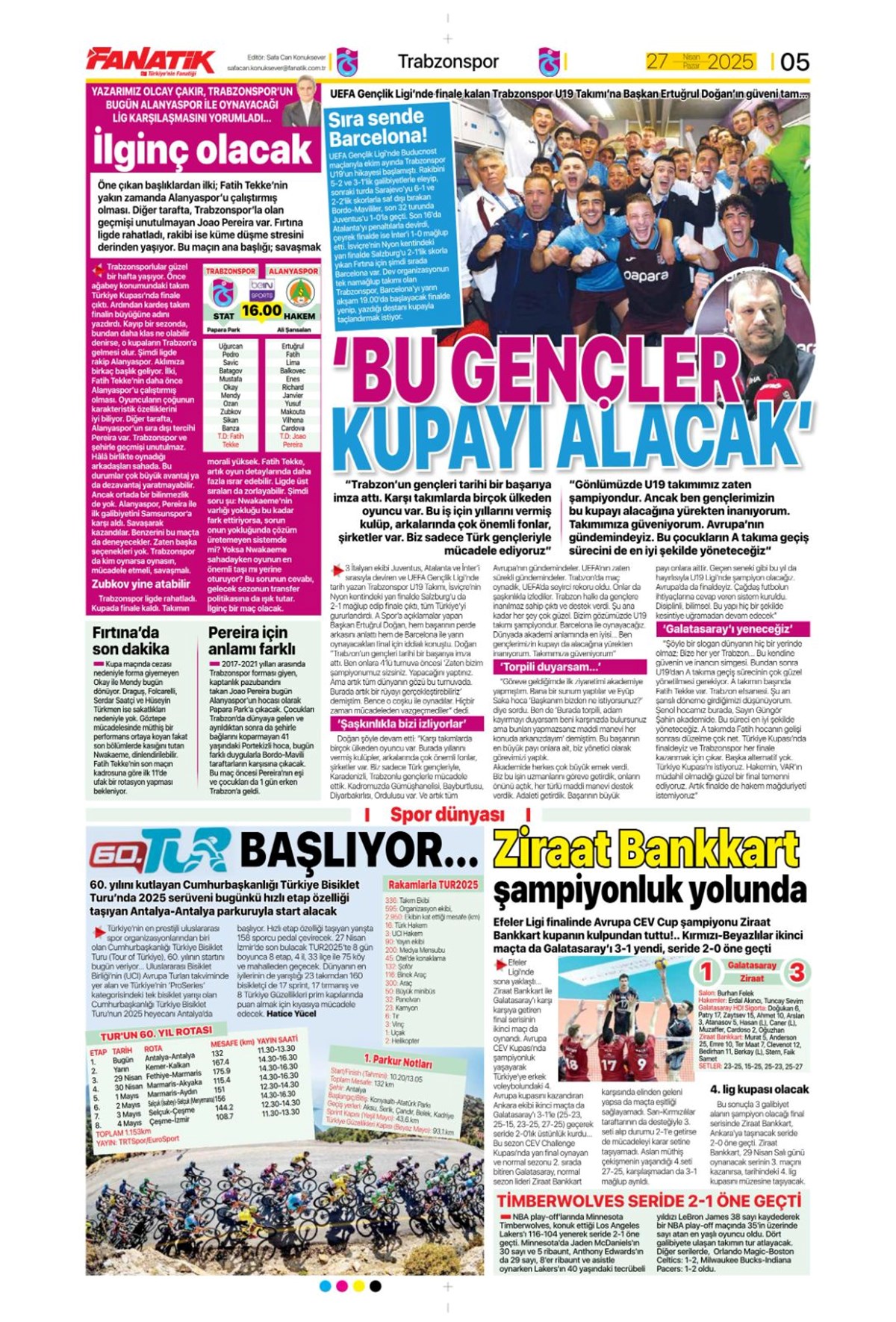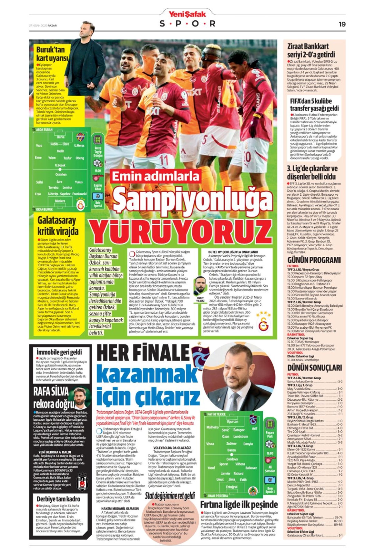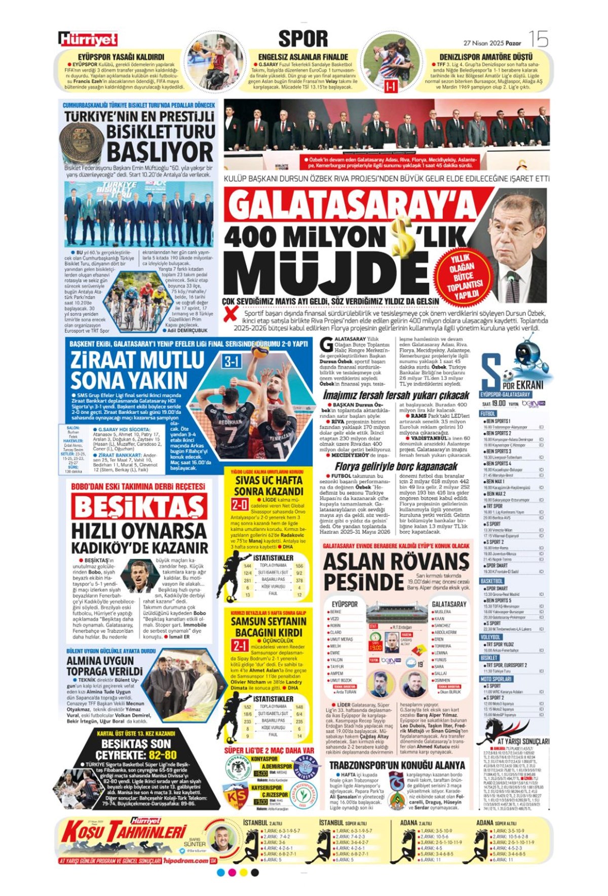 Günün spor niteliklerinde, son gelişmeler ve spor gündemindeki transfer haberleri açıklandı. 27 Nisan 2025 Gazete, Beşiktas, Fenerbahce, Galatasaray ve Trabzonsport’un News’un spor sayfaları 1 dakikaya bir göz atın.