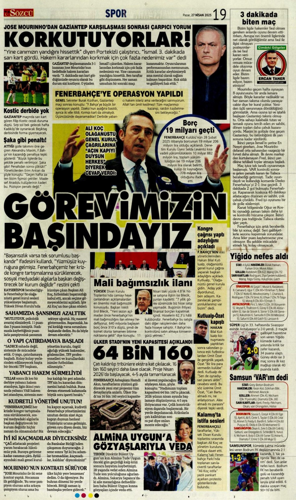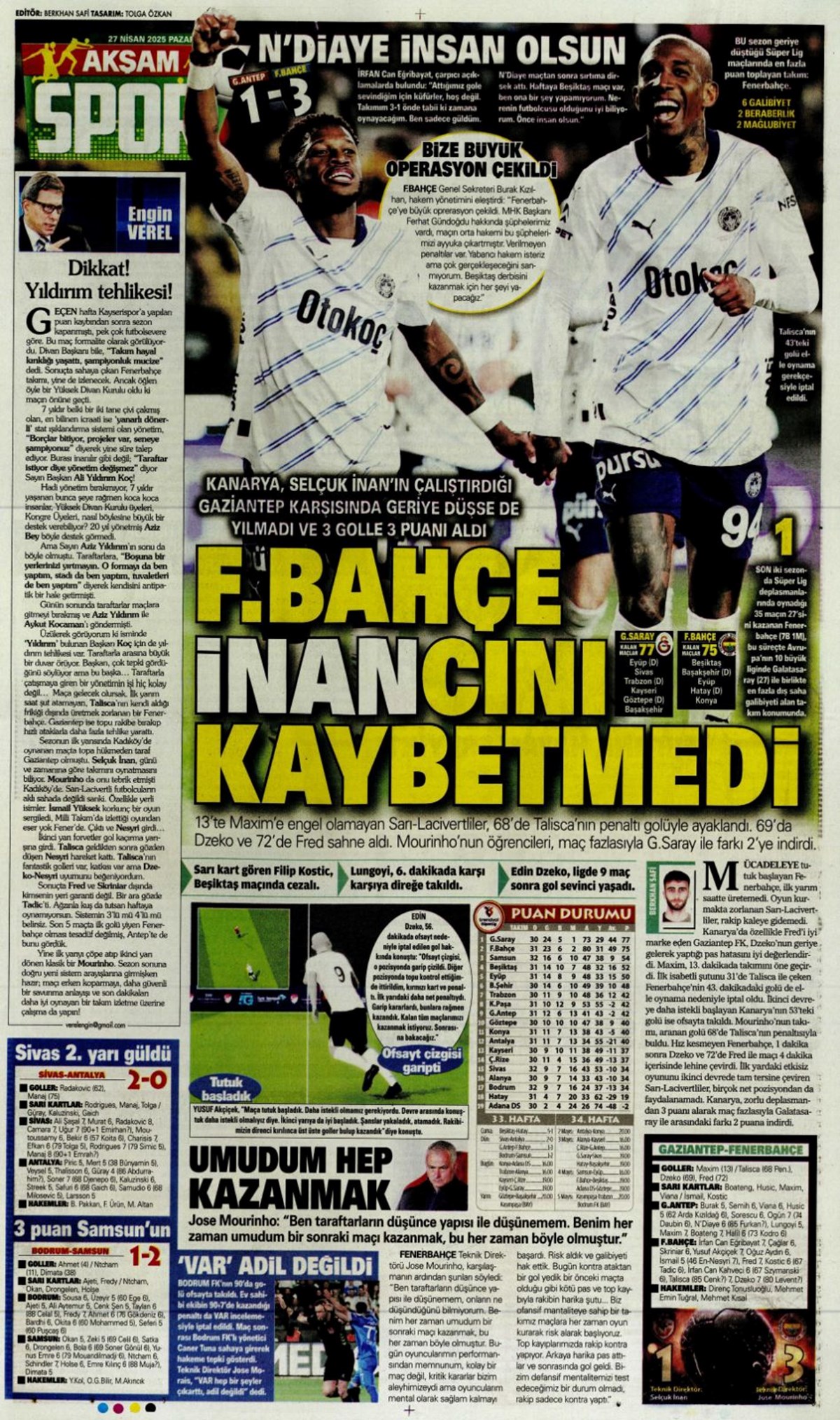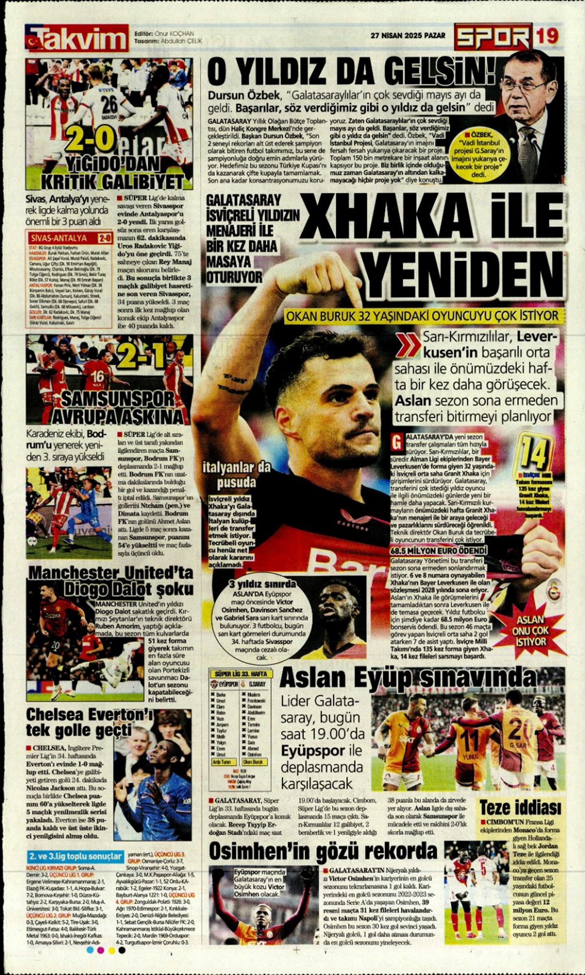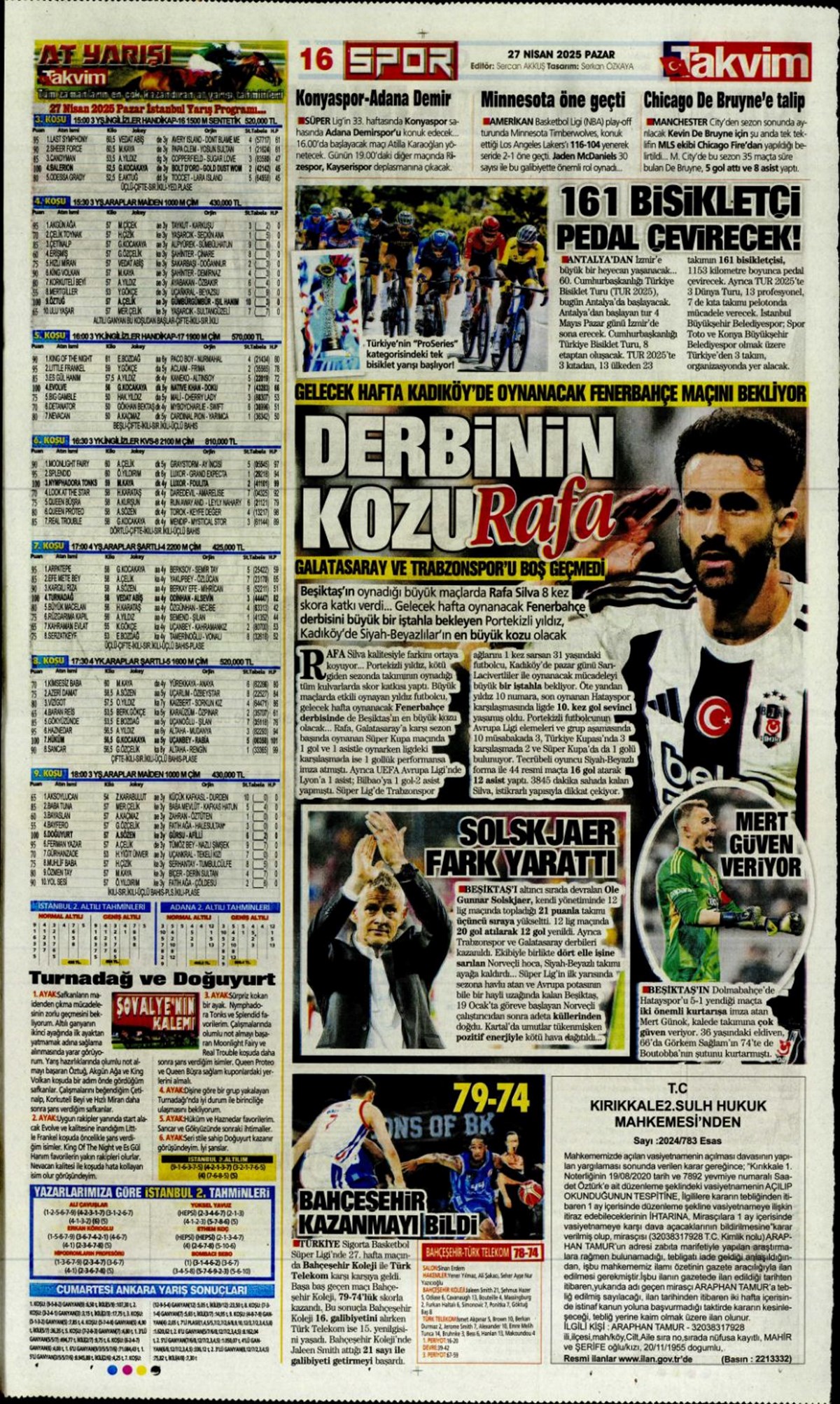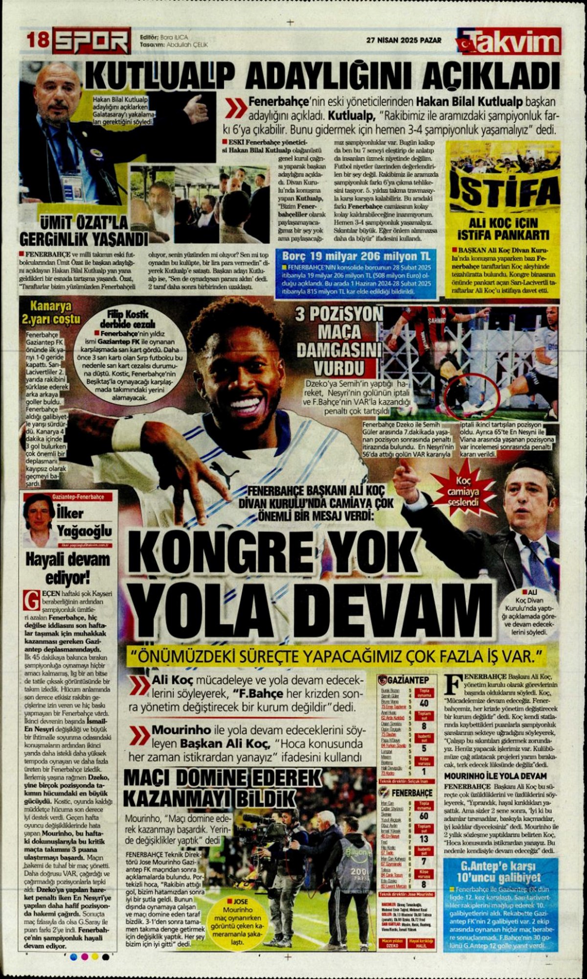 Günün spor niteliklerinde, son gelişmeler ve spor gündemindeki transfer haberleri açıklandı. 27 Nisan 2025 Gazete, Beşiktas, Fenerbahce, Galatasaray ve Trabzonsport’un News’un spor sayfaları 1 dakikaya bir göz atın.