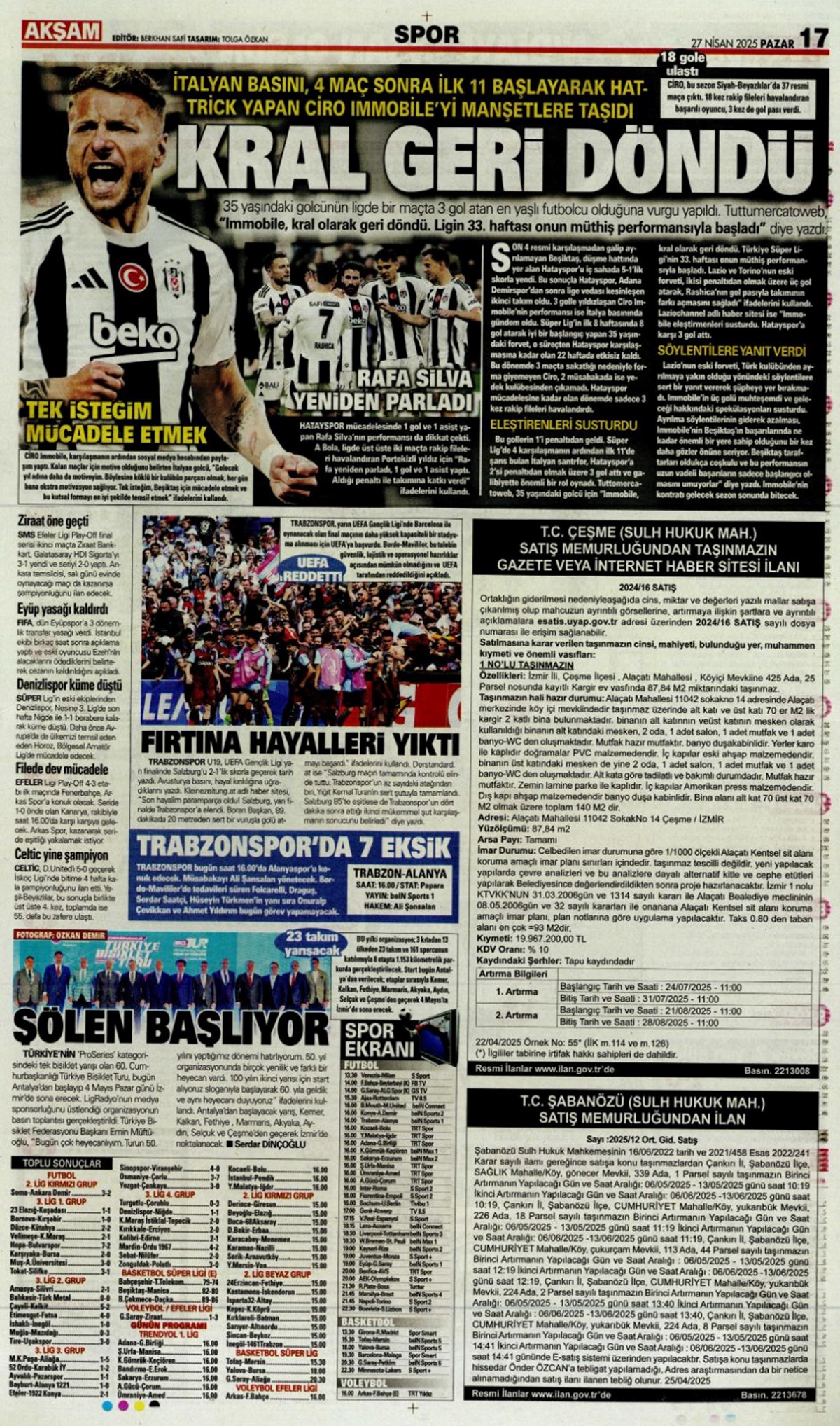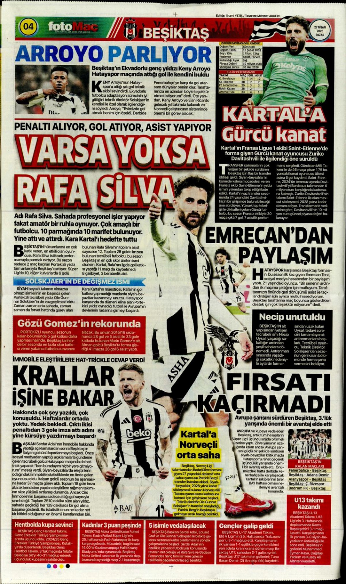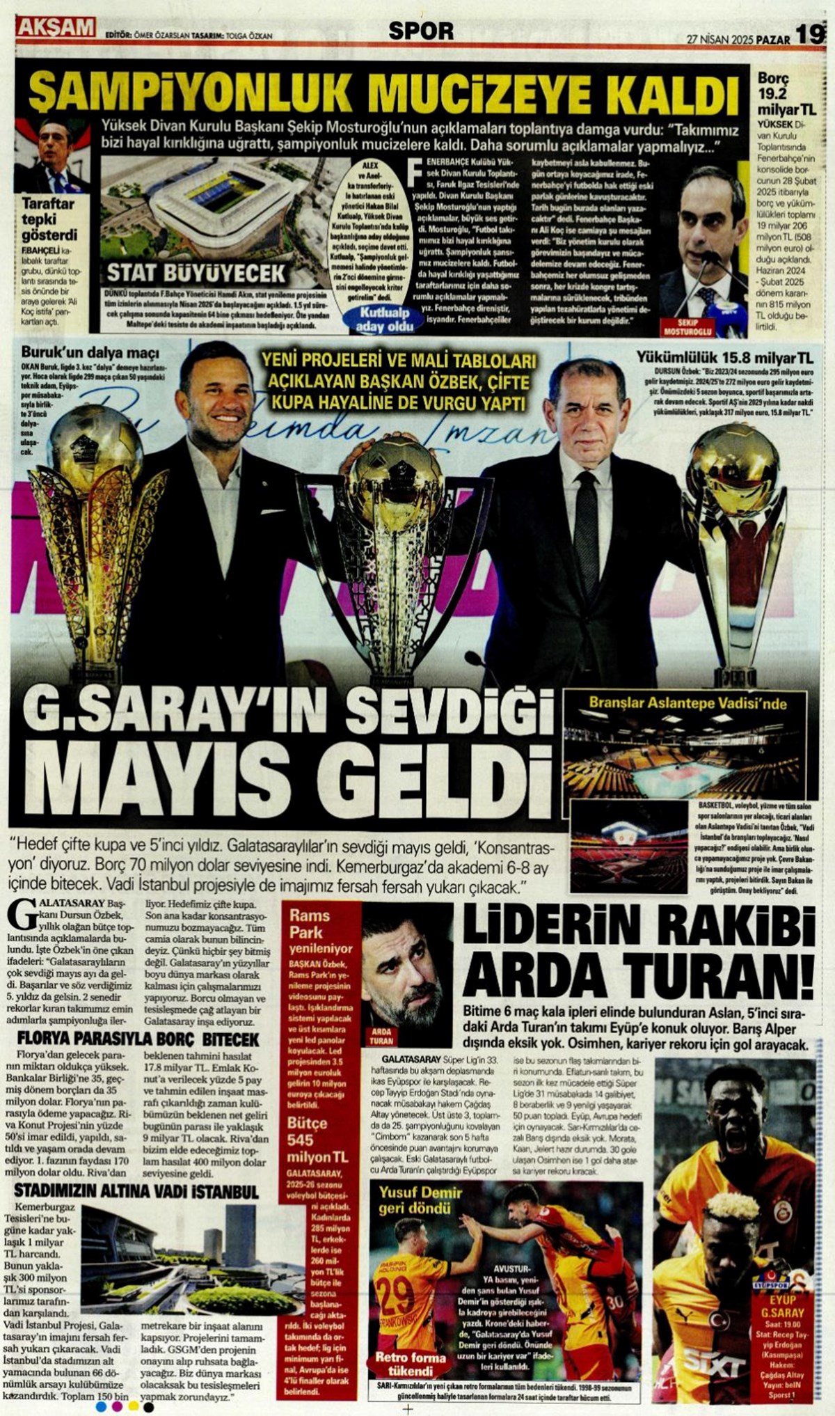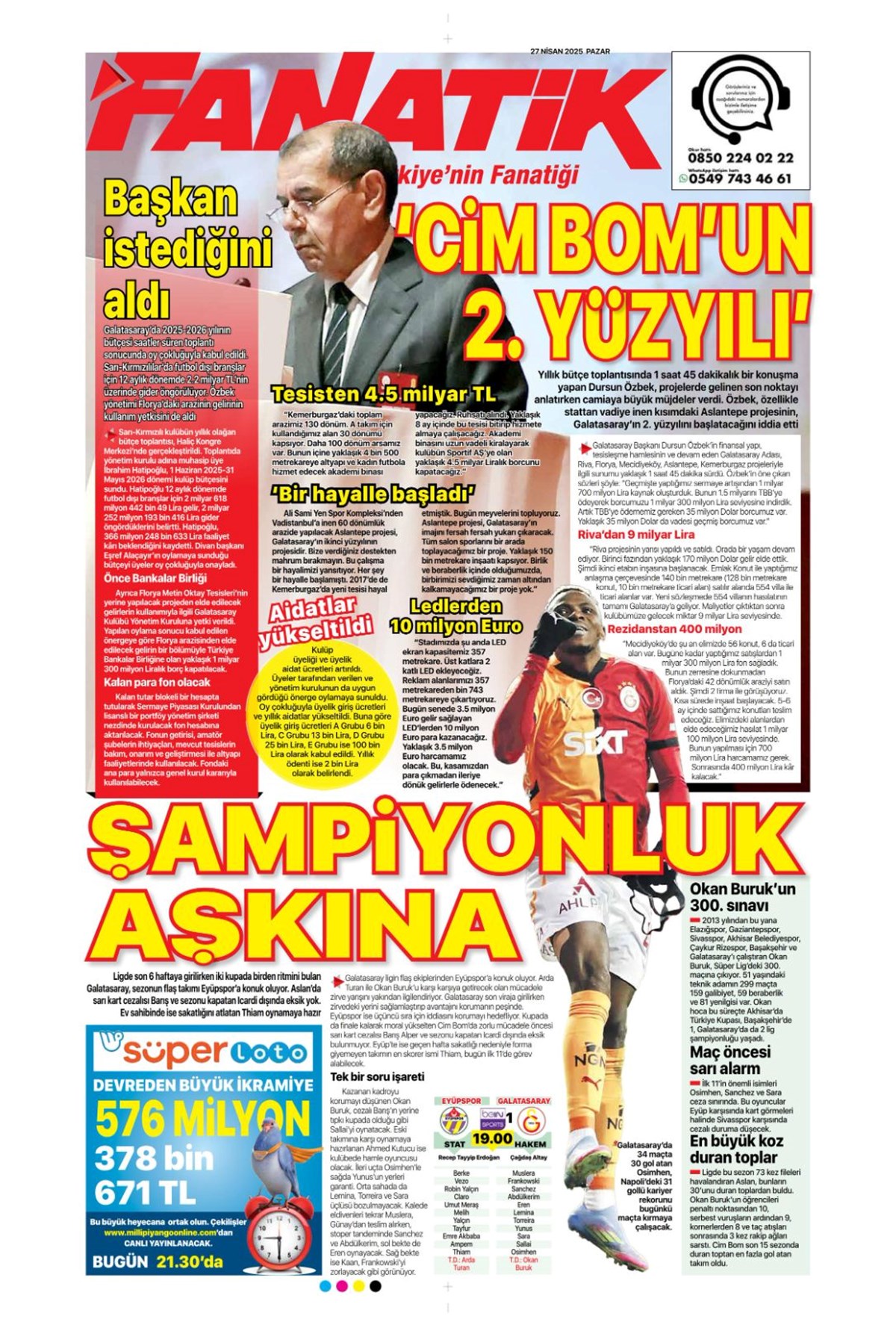 Günün spor niteliklerinde, son gelişmeler ve spor gündemindeki transfer haberleri açıklandı. 27 Nisan 2025 Gazete, Beşiktas, Fenerbahce, Galatasaray ve Trabzonsport’un News’un spor sayfaları 1 dakikaya bir göz atın.
