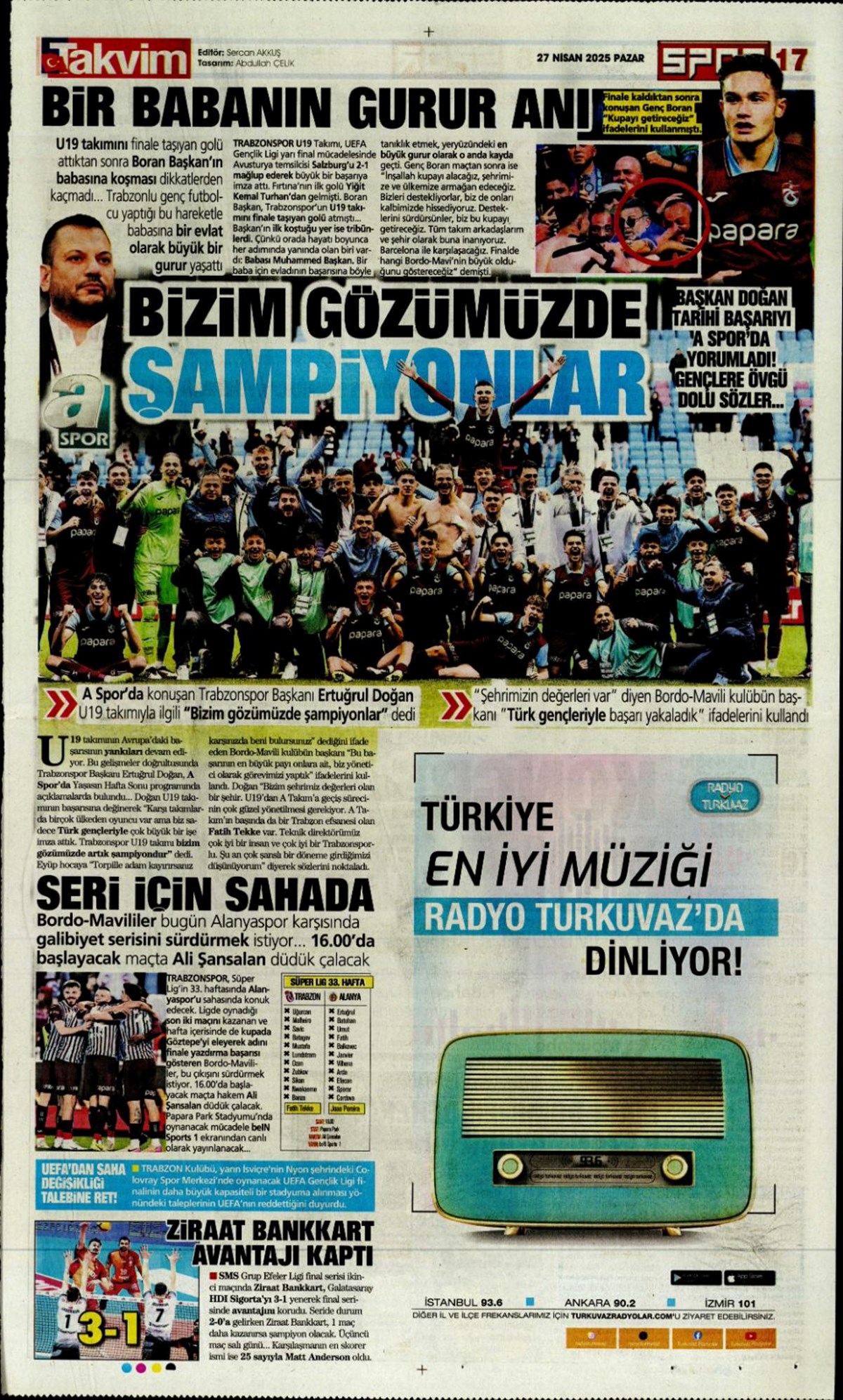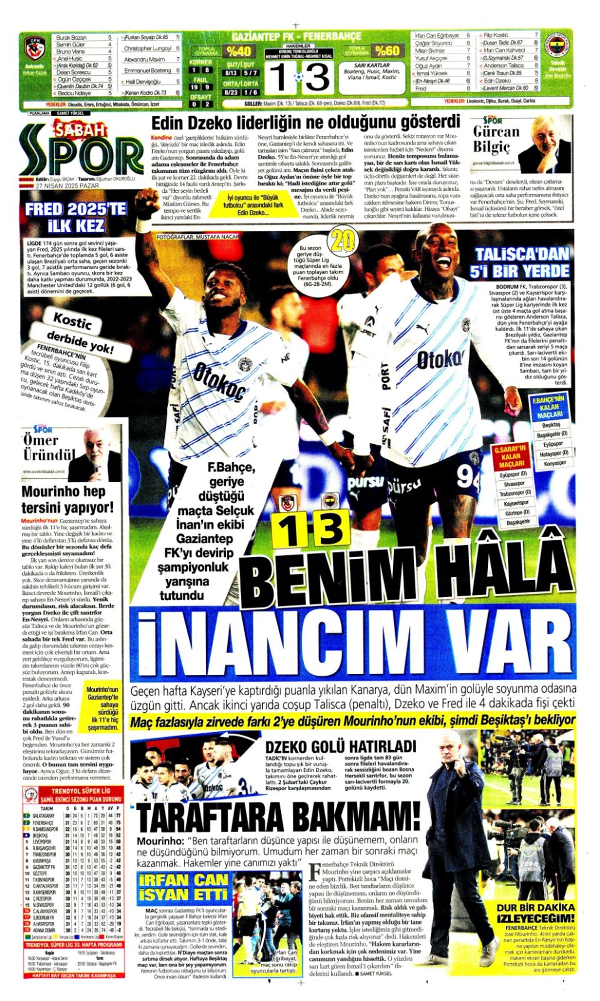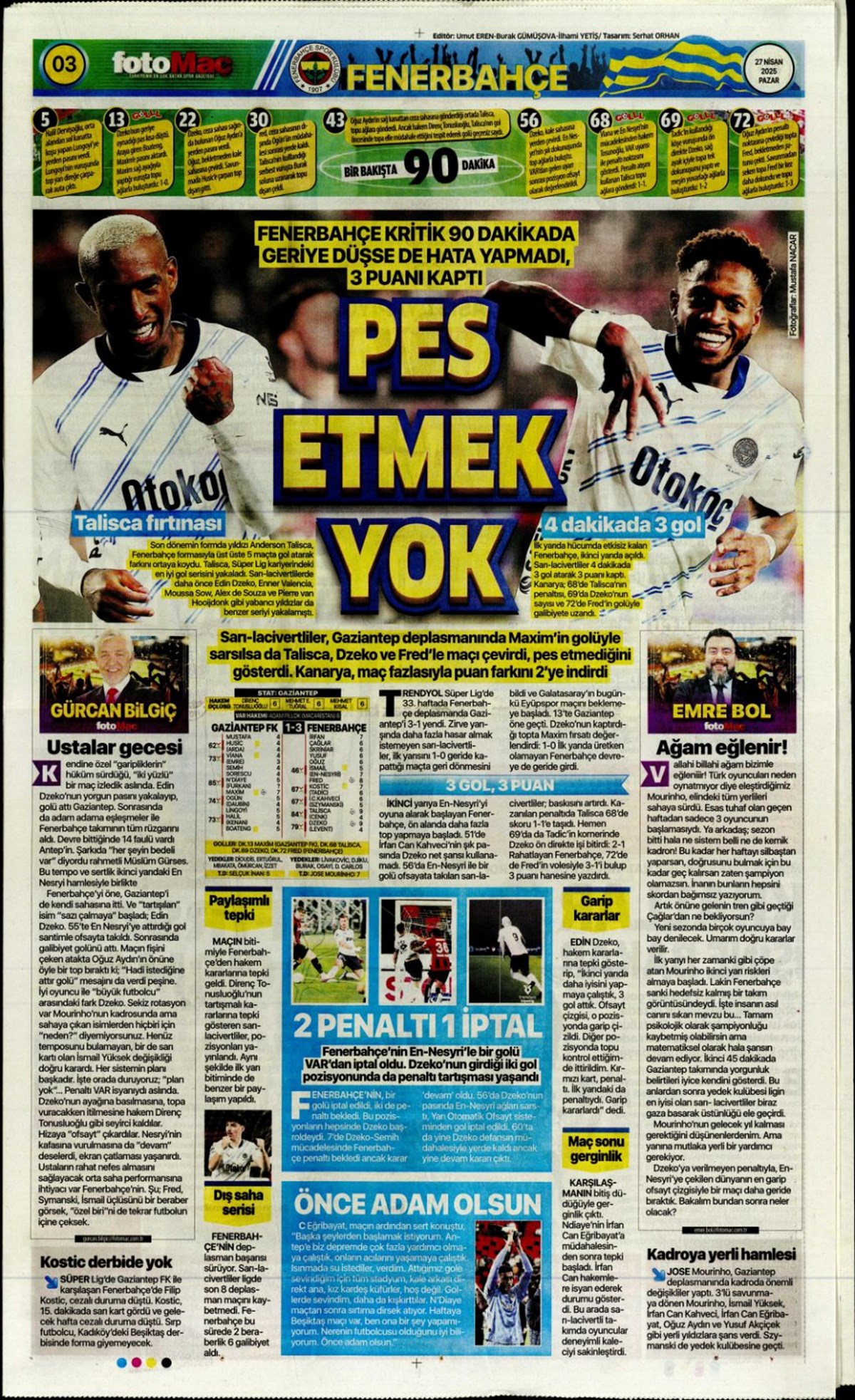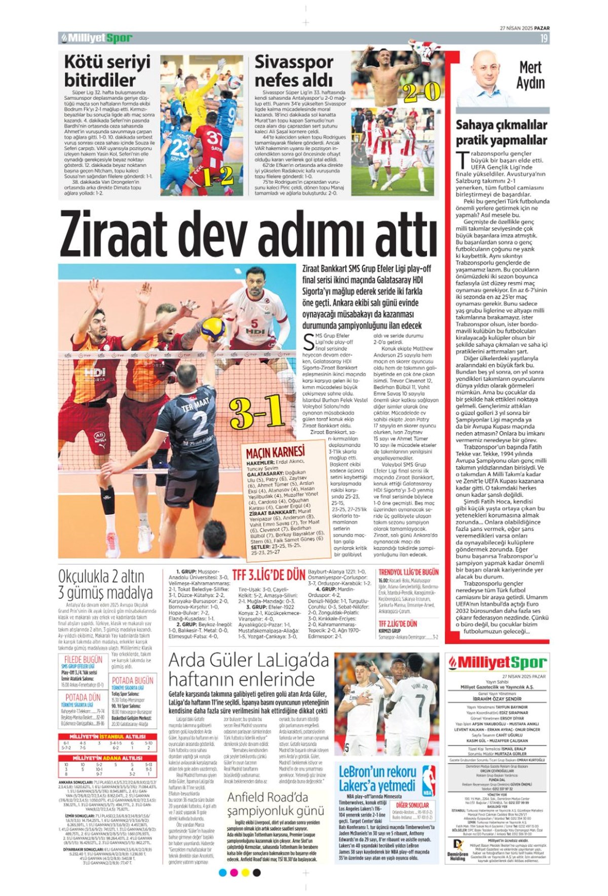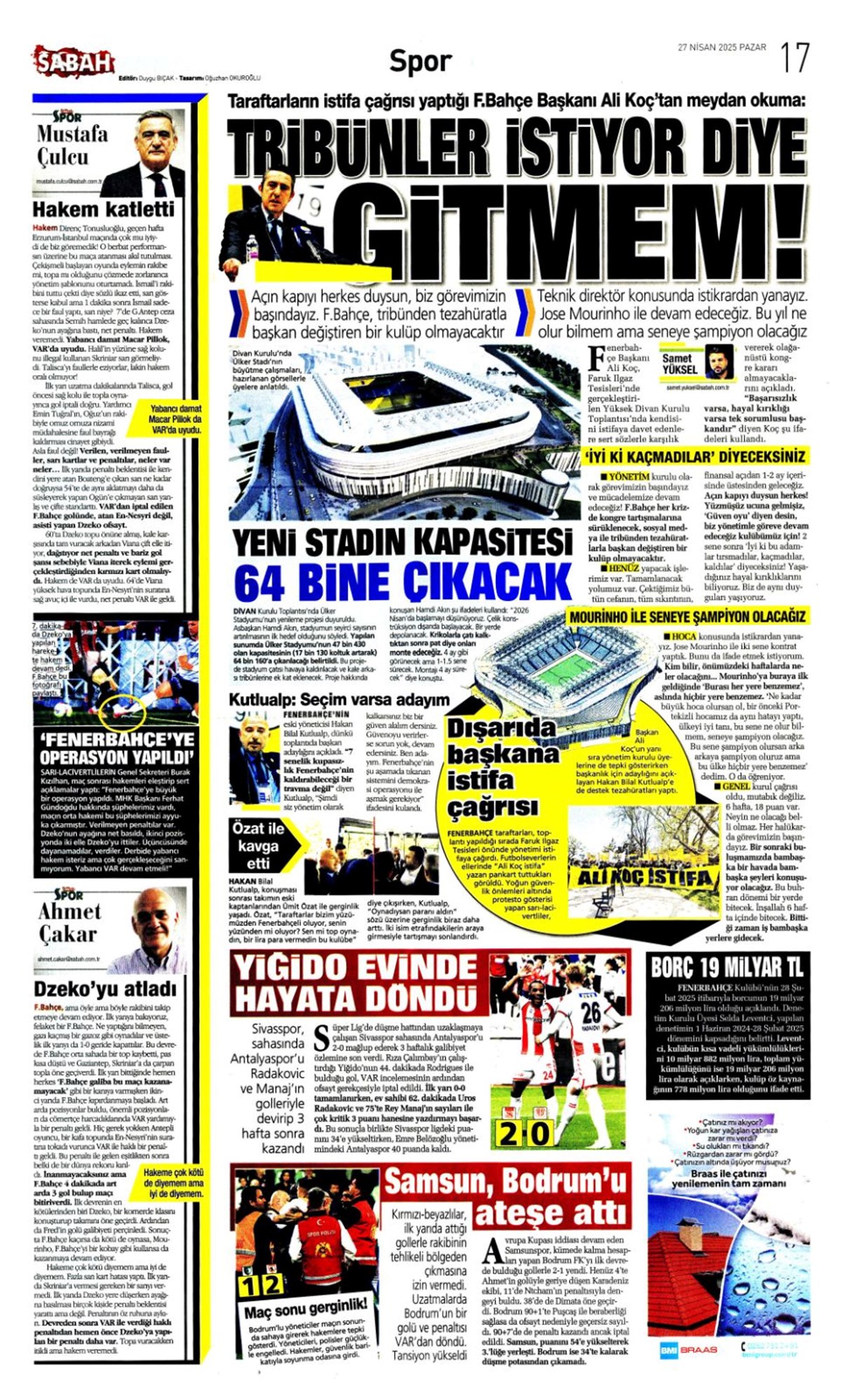 Günün spor niteliklerinde, son gelişmeler ve spor gündemindeki transfer haberleri açıklandı. 27 Nisan 2025 Gazete, Beşiktas, Fenerbahce, Galatasaray ve Trabzonsport’un News’un spor sayfaları 1 dakikaya bir göz atın.