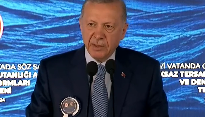 Cumhurbaşkanı Erdoğan, Aksaz Tersanesi Komutanlığı açılış ve deniz platformlarının teslim töreninde konuşuyor.