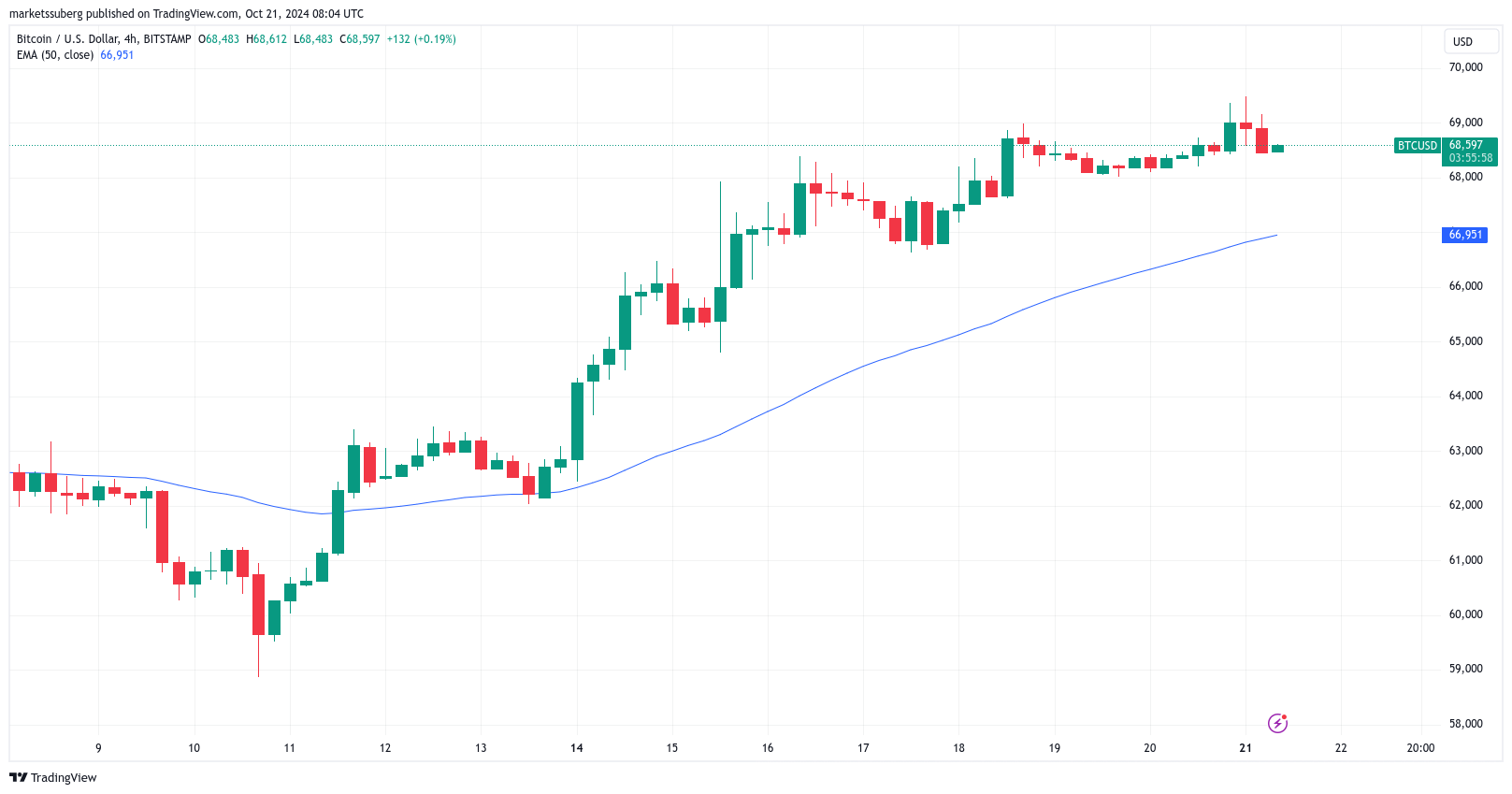 50EMA ile BTC/USD 4 saatlik grafik. Kaynak Ticaret Görünümü